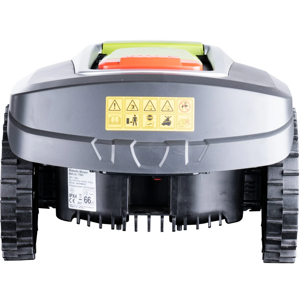 Der akkubetriebene Rasenmähroboter ist für Rasenflächen mit bis zu 900 m² konzipiert und mäht diese besonders gründlich und zuverlässig auch in unwegsamen Geländen. Steigungen von bis zu 35 % oder Engstellen stellen für den Mähroboter kein Problem dar. Drei schwenkbare Messer sorgen für einen gründlichen und sauberen Rasenschnitt. Sobald der Akku entladen ist kehrt der Mähroboter selbstständig in die Lade-Dockingstation zurück.