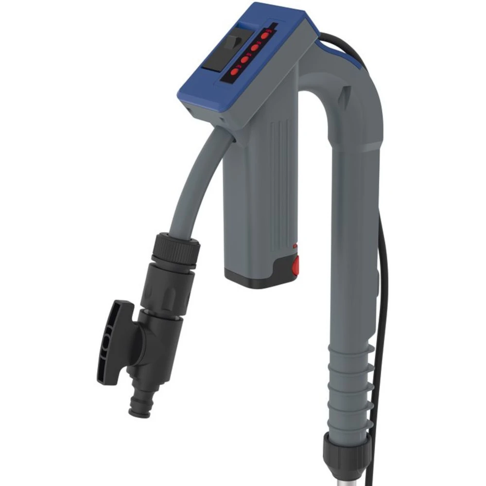 Die teleskopierbare Tauchpumpe ermöglicht eine Eintauchtiefe von 540 bis ca. 950 mm. Die Wasserpumpe wird einfach am Regenfassrand eingehängt und ist 360° drehbar.