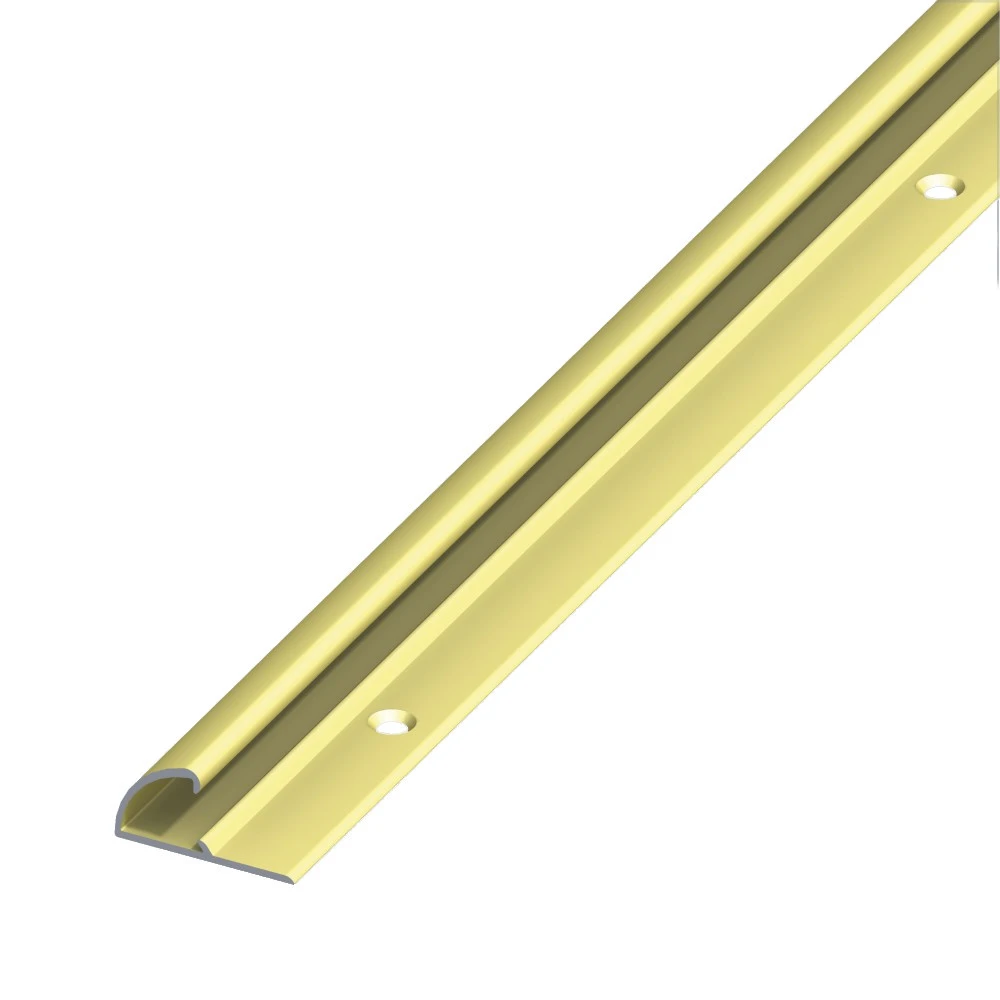 Das Winkel-Abschluss-Profil aus eloxiertem Aluminium sorgt vor allem bei vorhandenen Türschwellen oder Treppen für einen sauberen, dezenten Abschluss. Unsaubere Schnittkanten der Bodenbeläge werden verdeckt, Stolperfallen werden vermieden.