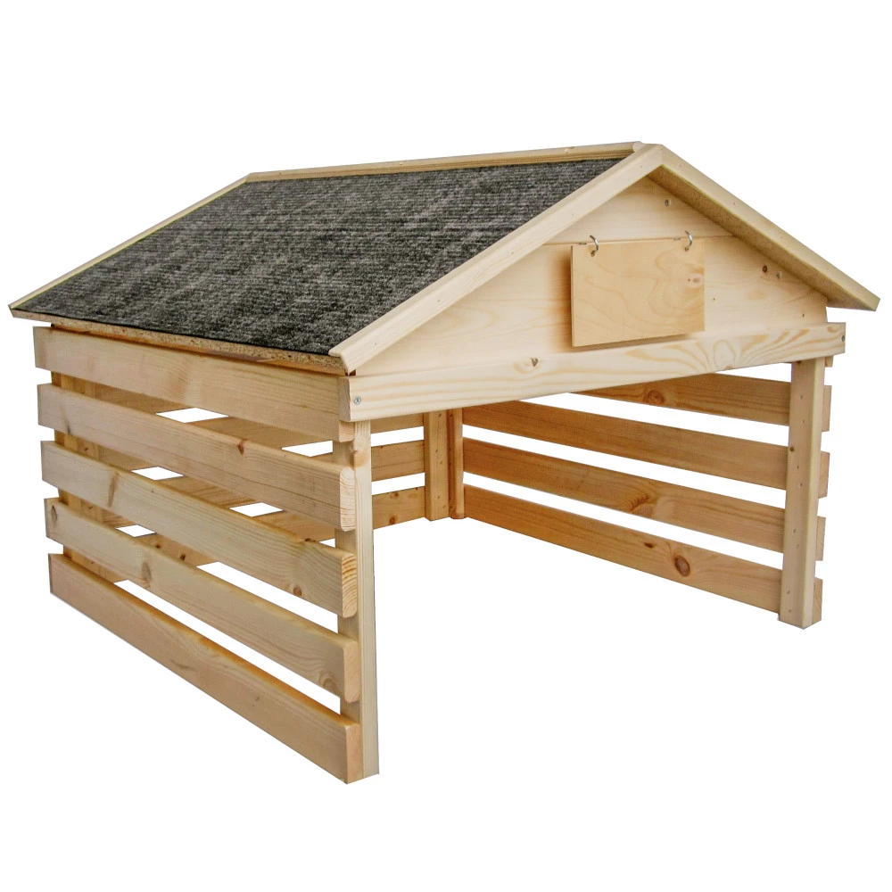 Wenn man seinen Mähroboter vor Schmutz und Witterung schützen möchte, empfiehlt sich die Unterbringung in einer Garage. Der perfekte Unterstand für den Rasenmähroboter ist diese stabile Garage aus massivem Kiefernholz. Das Dach ist mit wasserdichter Teerpappe eingedeckt. Ein Hängeschild zum Beschriften ist im Lieferumfang enthalten.