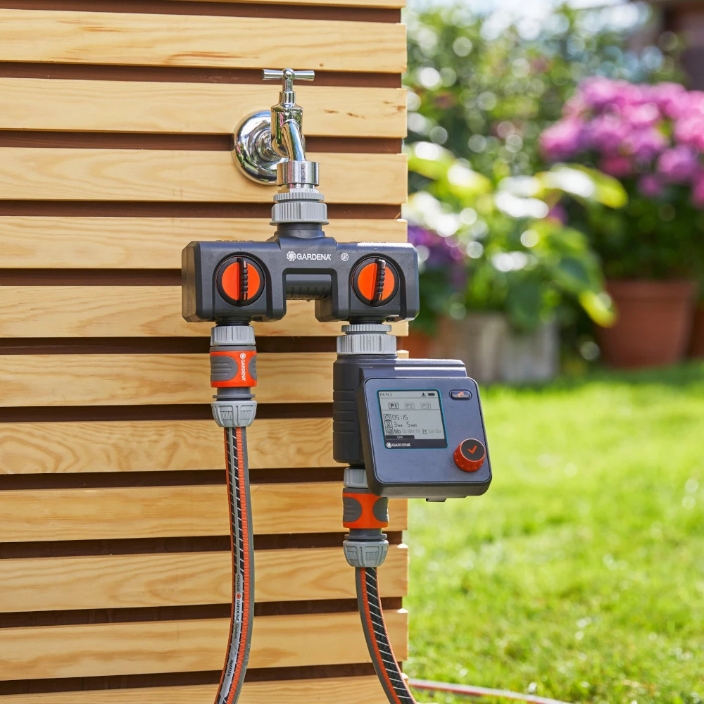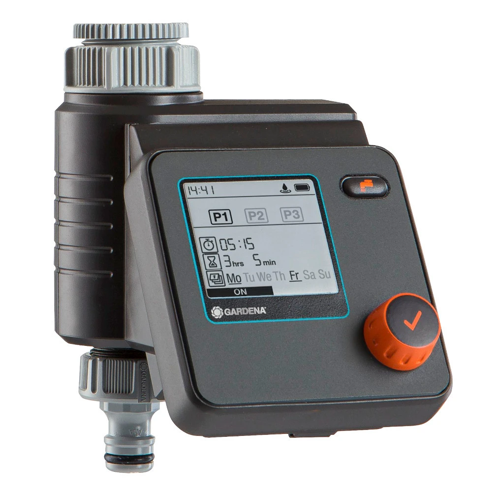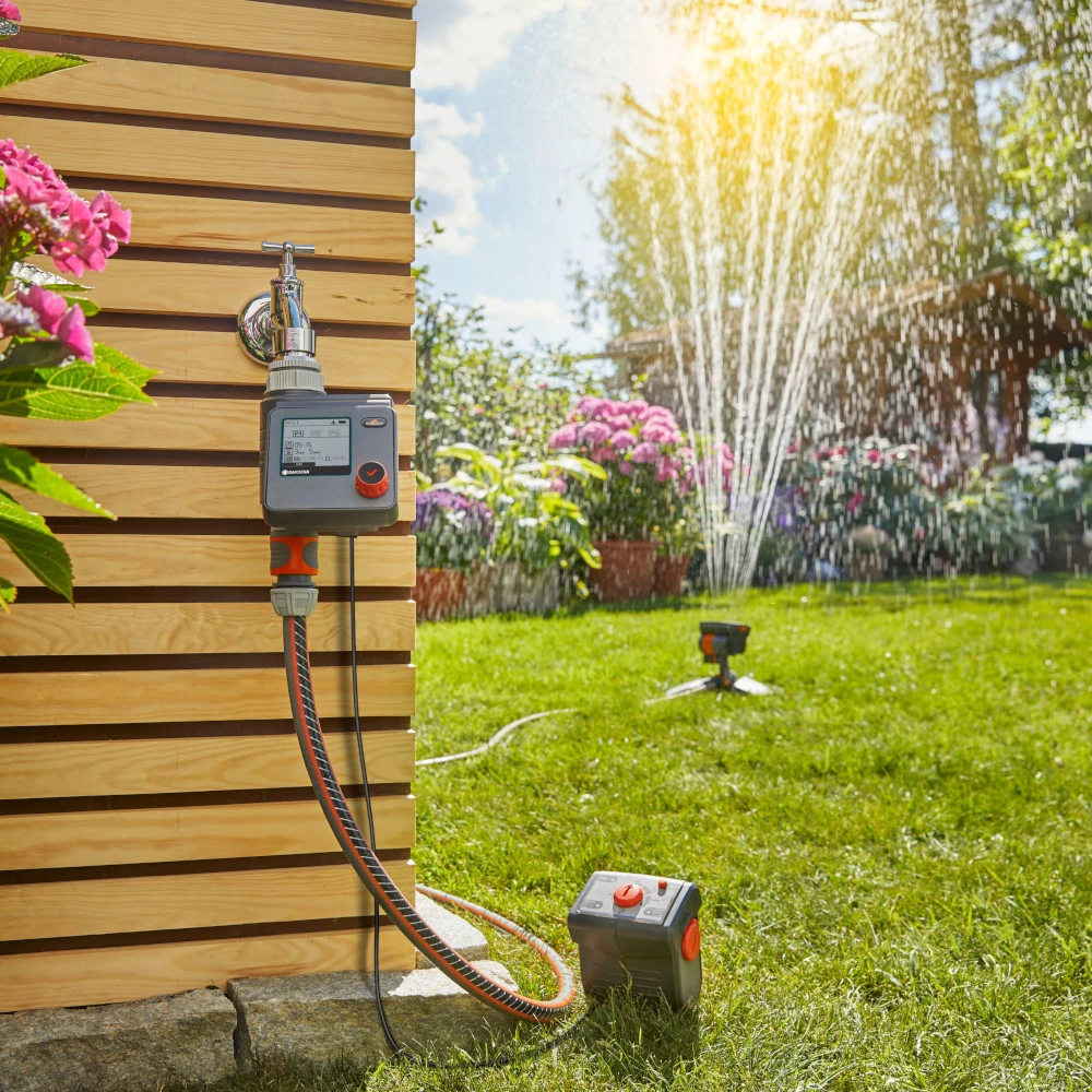 Mit der GARDENA Bewässerungssteuerung Select lässt sich die Bewässerung für jeden flexibel und individuell steuern. Für die Bewässerung können drei unterschiedliche und voneinander unabhängige Zeitpläne erstellt werden. Beginn, Dauer und Wochentage der Bewässerung sind einstellbar. Das Steuergerät ist batteriebetrieben, es wird direkt an den Wasserhahn angeschlossen und ist mit nur einem Dreh- und Druckschalter zur Auswahl der Werte und zur Bestätigung einfach zu bedienen. Ein gut ablesbares LC-Display gibt alle Einstellungen auf einen Blick wieder. Funktion „Jetzt bewässern“: Wenn die Bewässerung unmittelbar gestartet werden soll, kann sie von Hand aktiviert werden, ohne das Gerät vom Wasserhahn zu entfernen oder die Einstellungen zu verändern. Die Bewässerungssteuerung funktioniert dank der ‚Safe Stop‘-Technologie immer zuverlässig: Ist der Energiestand der Batterie zu schwach, um einen Bewässerungsvorgang lückenlos zu steuern, wird dieser nicht gestartet. Die Batterieanzeige im Display zeigt rechtzeitig an, wann die Batterie gewechselt werden sollte. Das witterungsbeständige Steuergerät ist auswechselbar. Es kann in Kombination mit einem GARDENA Bodenfeuchtesensor eingesetzt werden. GARDENA garantiert mit der Auszeichnung „Made in Germany“ höchste Qualität. Bei dieser Steuerung ist eine effiziente Bewässerung garantiert, denn jeder Tropfen zählt.