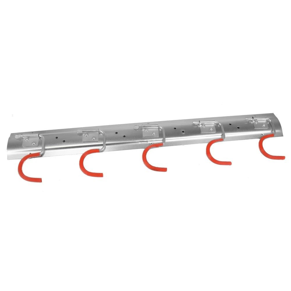 Breite Leiste mit 5 klappbaren Haken zum einfachen Aufbewahren von Besen, Rechen, etc. Die Breite von ca. 50cm bietet jedem GerÀt genug Platz, so dass diese sich einfach aufhÀngen lassen und sich nicht gegenseitig behindern.