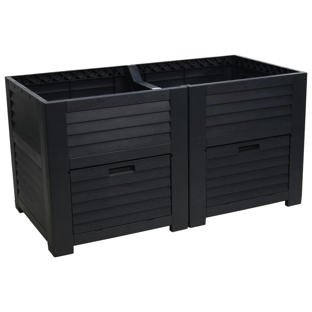 Hochbeet aus anthrazitem Kunststoff mit Aufbewahrung fĂŒr Blumen- und KrĂ€utergĂ€rten