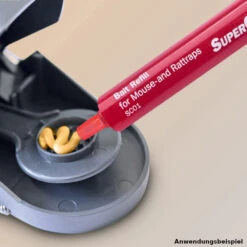 Die Köder für die verschiedenen Schlagfallen von SuperCat werden in handlichen Spritzen geliefert mit denen du das Lockmittel einfach in die dafür vorgesehenen Behälter der Fallen portionieren kannst. Nach der Benutzung können kann die Köderspritze einfach wieder aufgefüllt werden. Der Lockstoff ist aus 100 % natürlichen Inhaltsstoffen produziert und stellt somit keine Gefahr für Kinder oder Haustiere dar. Der Geruch zieht vor allem Nager stark an und garantiert eine hohe Fangmenge in einer kurzen Zeitspanne.