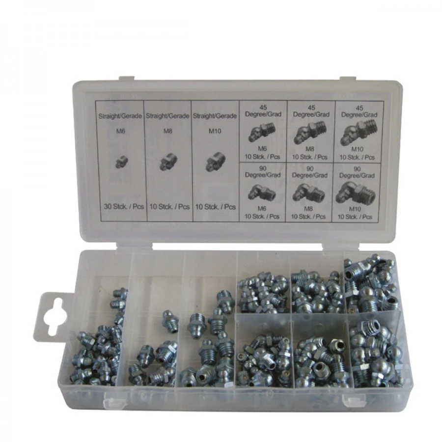 Bestes Handwerker Zubehör aus dem Hause Normex. Das 110 -teilige Schmiernippel Sortiment lĂ€sst keine WĂŒnsche offen.