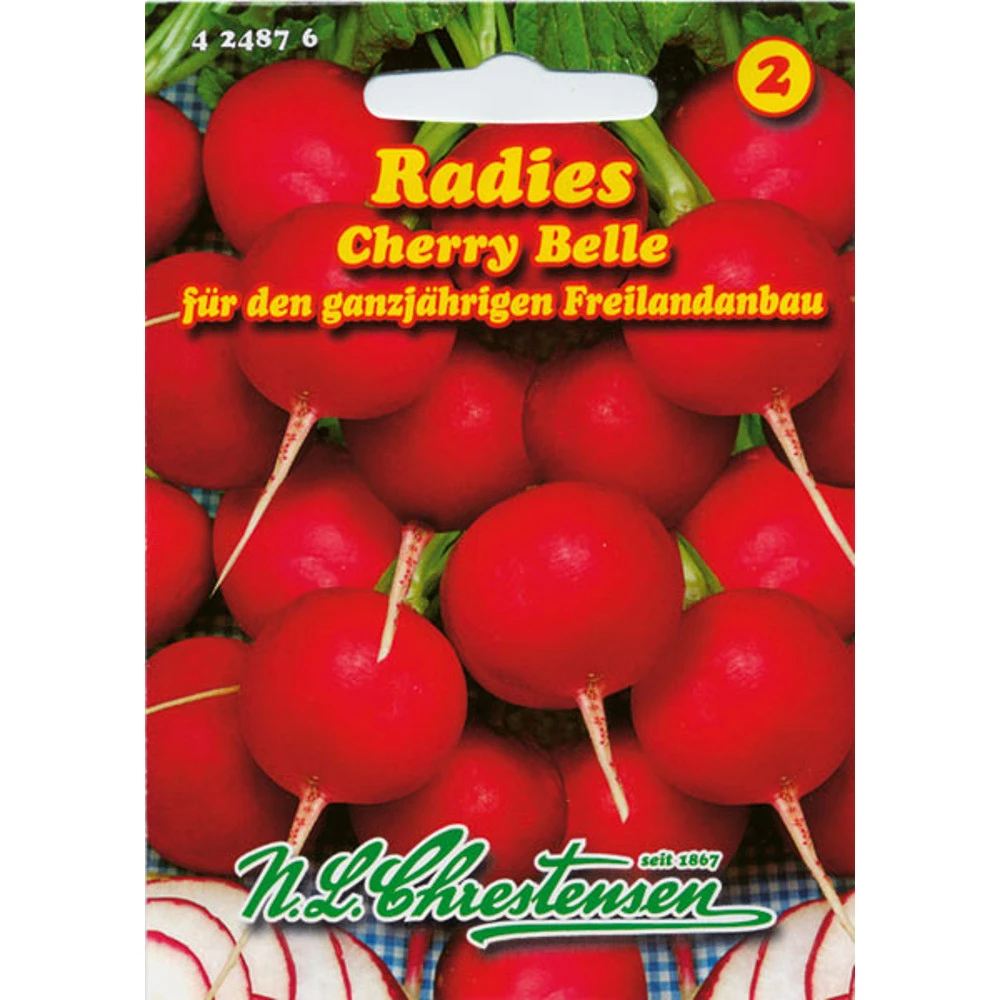 Ein Sommerradies mit raschwachsenden, leuchtend roten und mild wĂŒrzigen Knollen ist die Sorte „Cherry Belle“. Sie ist pelzfest und zart. Damit perfekt geeignet fĂŒr eine schmackhafte Dekoration oder einen knackigen Salat.