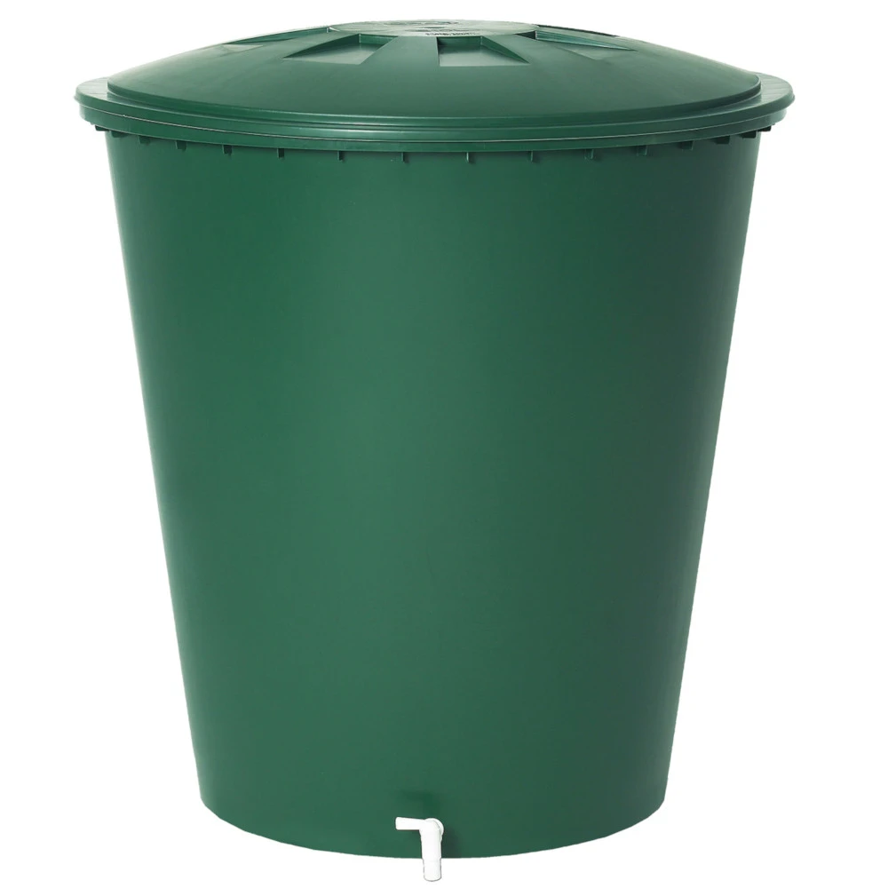 Regentonne rund mit 310 Liter Fassungsvermögen in grün, inklusive Deckel und Auslaufhahn