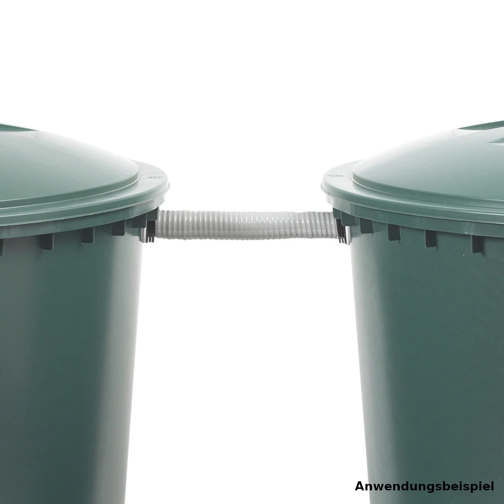 Regentonnen Verbindungsset fĂŒr eine schnelle Verbindung von 2 Regentonnen. Im Set enthalten ist ein 25 cm Schlauch und zwei Schlauchstutzen mit Kontermutter. Die Regentonnen Verbindung wird komplett montiert geliefert.