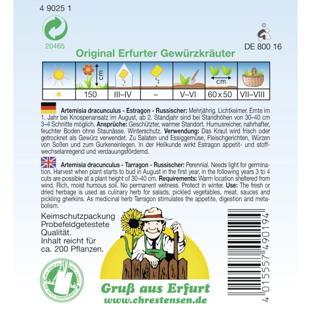 - 1 x Saatgut Estragon mehrjährig (ausreichend für ca. 200 Pflanzen)