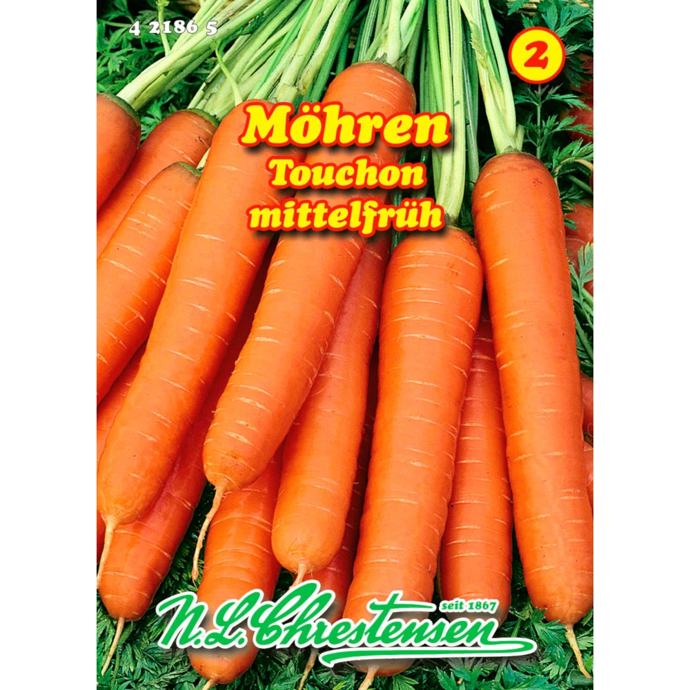 Die Speisemöhre Touchon mit zylindrischen, langen Möhren ist eine ertragreiche, mittelfrühe Freilandsorte. Die orangefarbige Karotte eignet sich zum Frischverzehr oder zum Einfrieren.