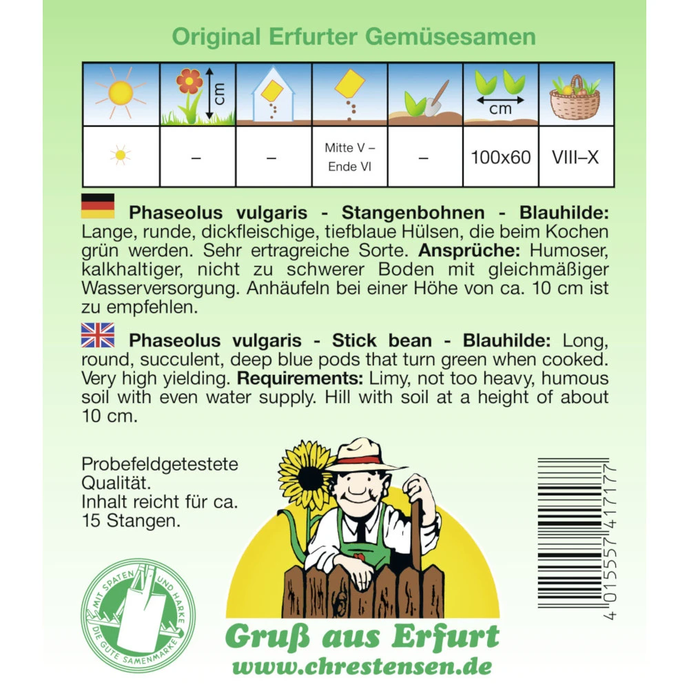 - 1 x Saatgut Stangenbohnen Blauhilde (ausreichend für ca. 15 Stangen)