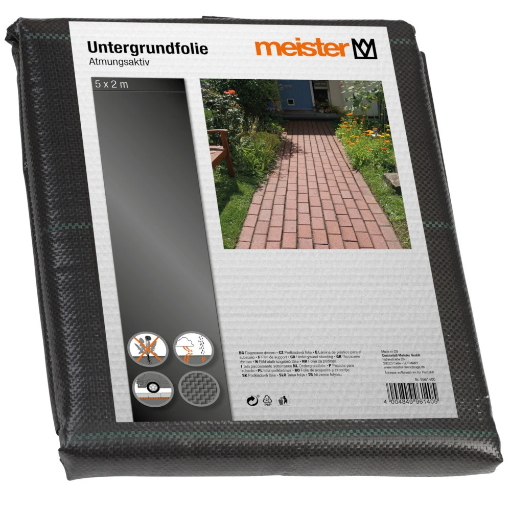 Schwarze, atmungsaktive Untergrundfolie fĂŒr 10 mÂČ FlĂ€che. Die Untergrundfolie ist die perfekte Bodenabdeckung zum Anlegen von SteingĂ€rten, Gehwegen, Terrassen und PlĂ€tzen.
